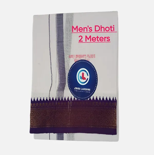 100 % Pure White Dhotii 2 Meters Unstitched (white & blue)